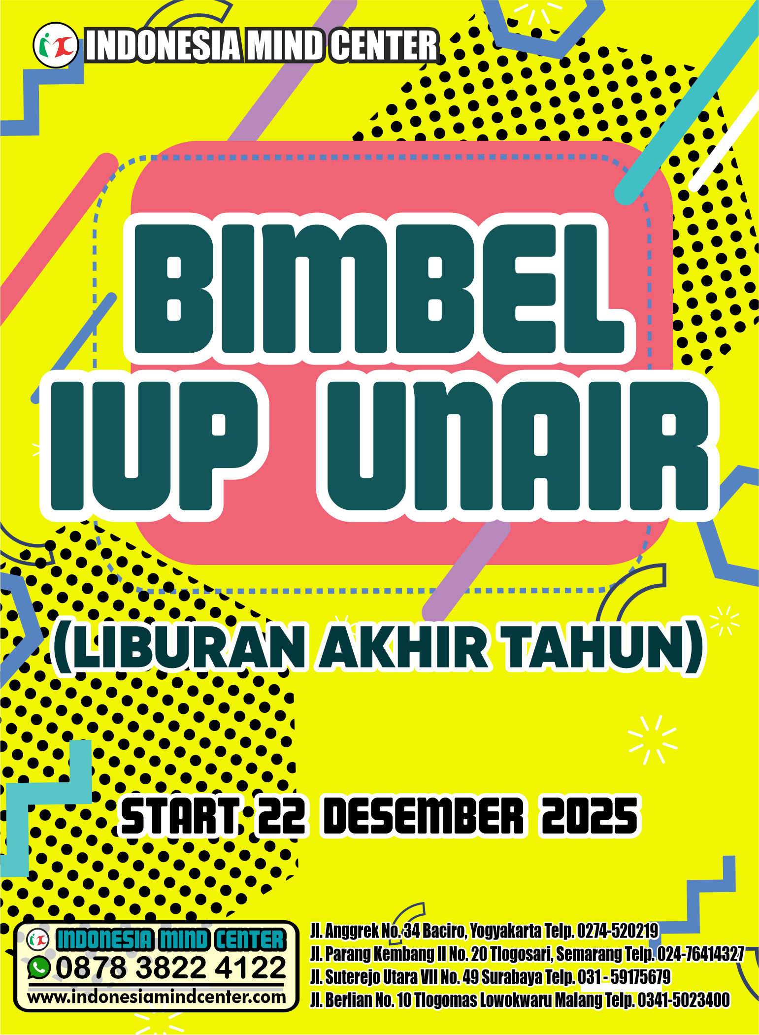 Jangan salah pilih bimbel, INDONESIA MIND CENTER masternya masuk PTN/KEDOKTERAN/ DAN KEDINASAN.